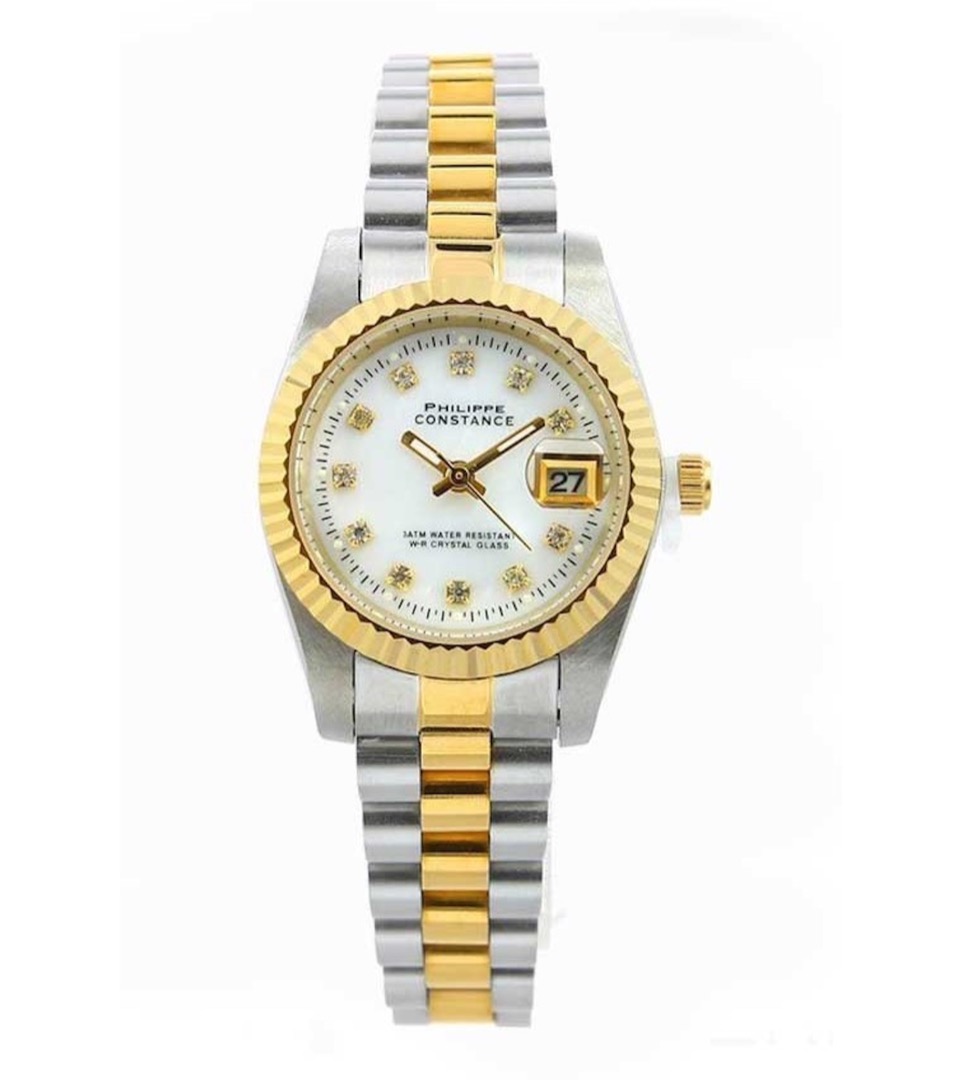 Drie kleuren, één statement. Het zilverkleurig-goudkleurige white marble horloge van Philippe Constance is het perfecte evenwicht tussen klassiek en edgy. De combinatie van koel zilverkleurig en warm goudkleurig geeft dit horloge een luxe uitstraling die moeiteloos opvalt zonder te overdrijven.