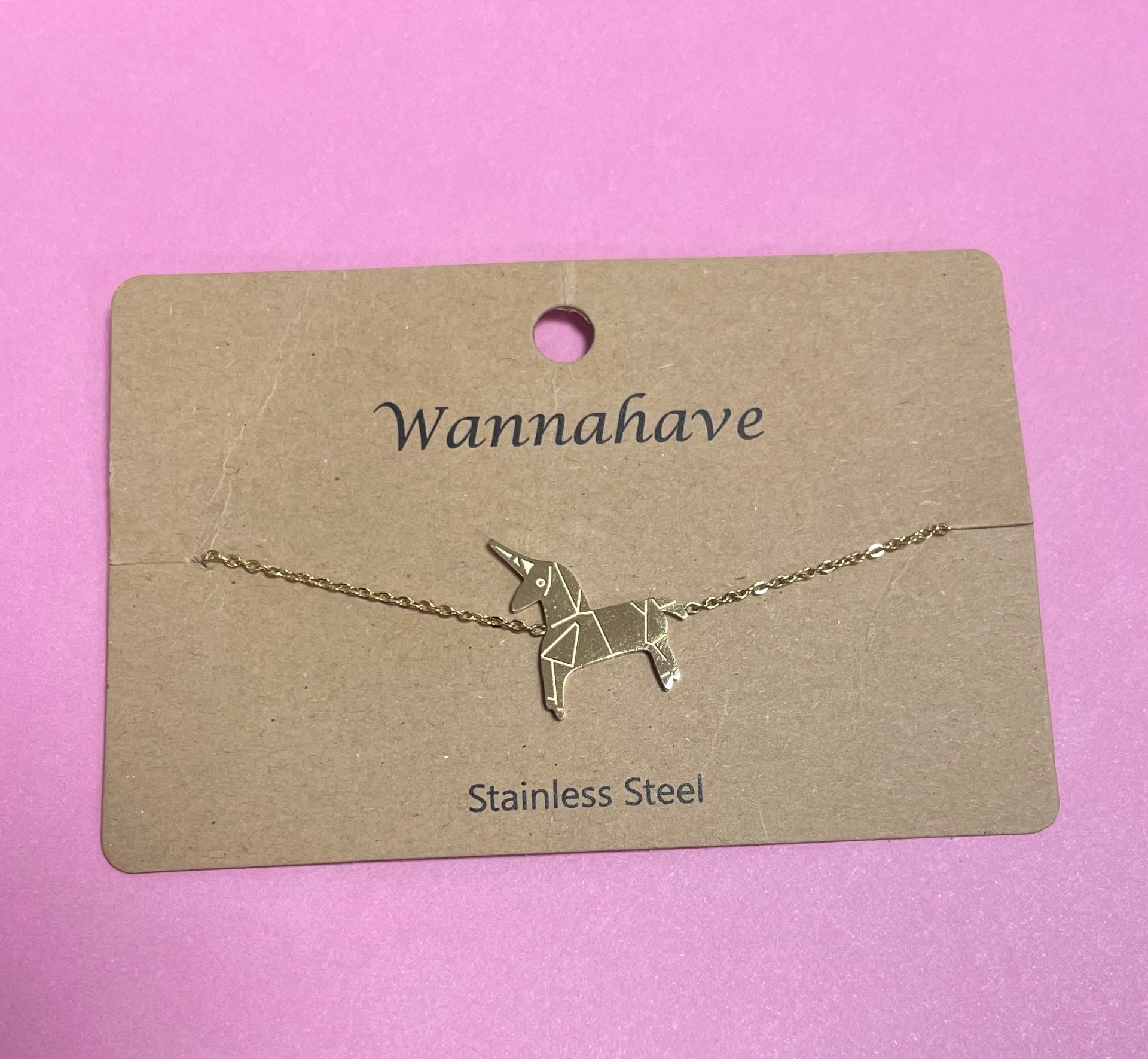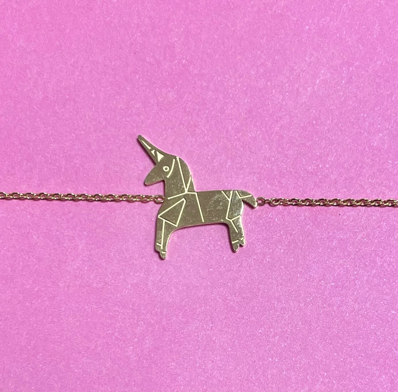 Goudkleurige armband met hangertje in de vorm van een unicorn. De armband is verstelbaar van 16 tot 19 centimeter. De afmetingen van de unicorn zijn: 1.8 x 1.9 Centimeter.